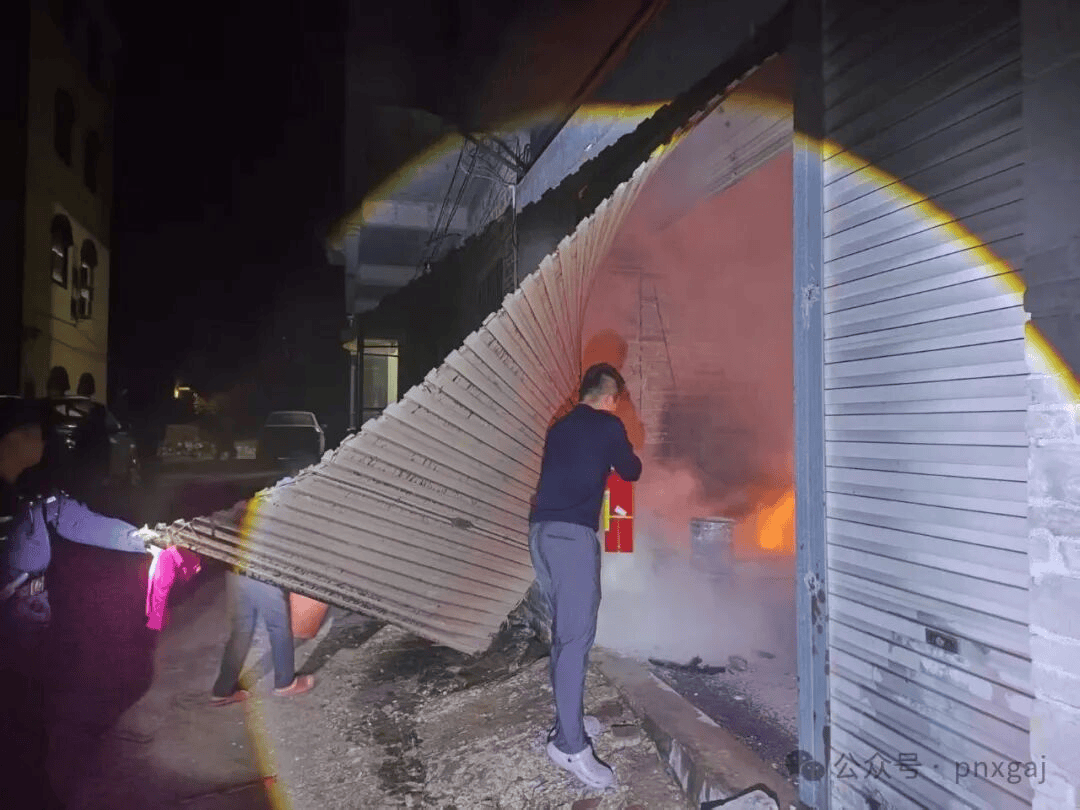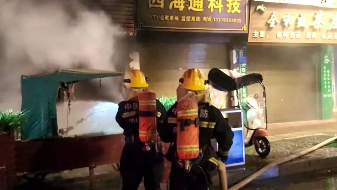 物业巡逻人员及时发现火情并报警,消防队员迅速赶到将火势控制,所幸未造成人员伤亡。
