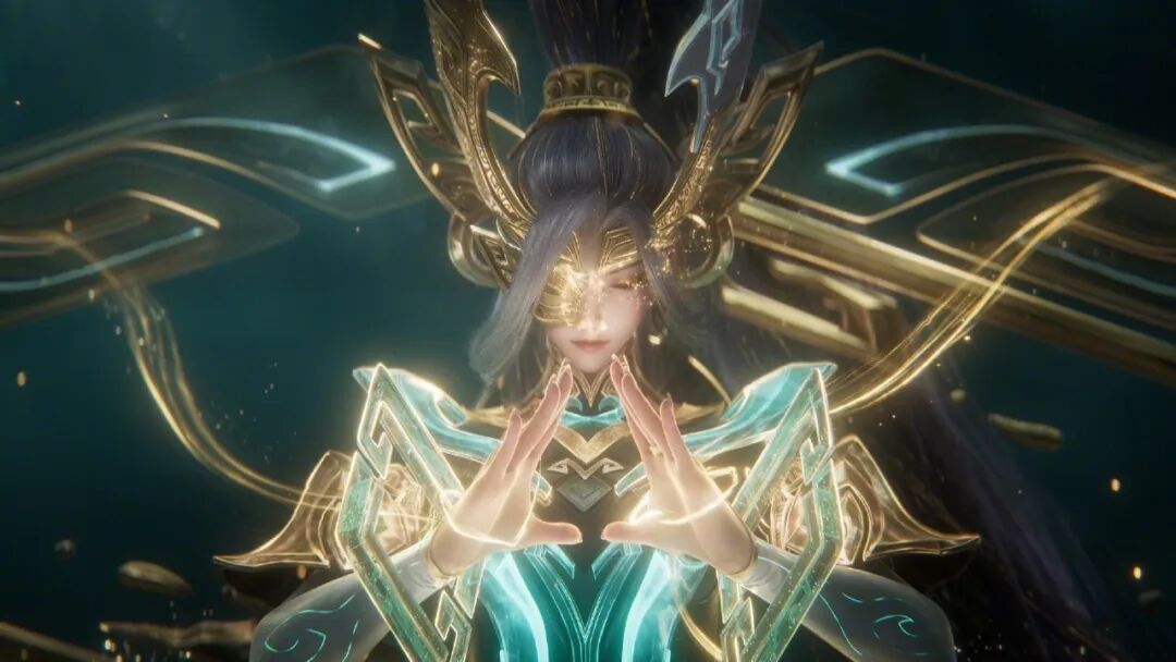 此次十周年主题皮肤,便将三星堆博物馆的镇馆之宝们,融入角色形象、技能与音效设计中,使其与《王者荣耀》的东方幻想风格相契合。少司缘被塑造为沟通天地人神的巫者,其形象融入了青铜铃、陶猪与青铜鸟等元素;杨戬则化身为由先民信仰凝聚而成的先祖之神,结合青铜纵目面具与金杖的特征;女娲作为“万灵之神”,其设计围绕眼形器、金鸟形饰等文物展开再创作;而后羿的皮肤灵感则来源于青铜神树。