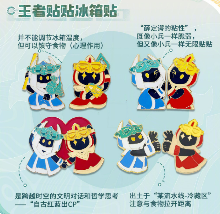 图源小红书:吃吃吃(高三闭关版)如果说官方谷子的销售情况,还跟《王者荣耀》游戏自身密不可分,那么游戏与其他消费品牌的合作频率,则更能纯粹地展现《王者荣耀》的IP影响力。我们依旧以《王者荣耀》此次十周年的品牌合作为例,除了携程、天猫等合作广告,以及Apple 授权专营店的线下签到活动外,其余6项联动都涉及“角色带货”。三星堆博物馆的联动,不仅在游戏内推出了青铜器系列的小兵皮肤,游戏外也同步上线了Q版小兵的谷子周边,柄图均为游戏之外的全新设计,通过博物馆官方线上渠道发售。KEEP的十周年联动奖牌,实则也是让角色粉丝为之买单。