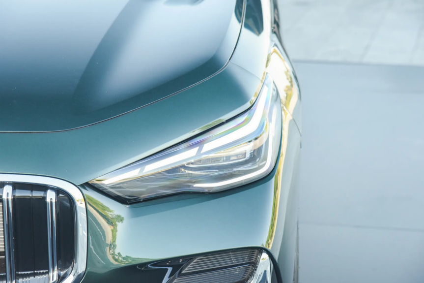 第5代帝豪在外观设计上,把中式韵味拿捏得很到位。前脸的前格栅采用12根竖状立柱造型,看着既大气又有底蕴;搭配造型犀利的LED前灯组,灯组内部有上下两条灯带,还能提供170多米的照射距离,夜间行车时能保证清晰视野。前保险杠两侧的仿进气口用了双L形装饰,另外新车在前车标下方还布置了一个摄像头,实用性和精致感都兼顾到了。