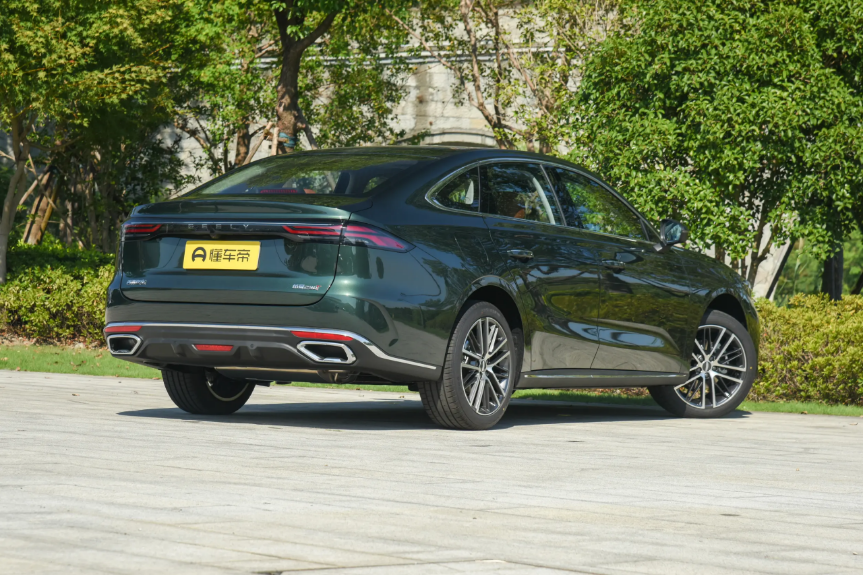 车身侧面,新车采用上扬式腰线,搭配传统的机械式门把手,同时提供17英寸和18英寸两种尺寸的铝合金轮毂,满足不同用户的需求。车尾部分,尾灯组之间通过黑色饰条衔接,形成了贯穿式效果;后包围新增了仿双边两出式排气,下方居中位置还配备了后雾灯。新车尾标用的是GEELY镀铬字母标识,要是搭载1.5T动力的车型,右下角还会有一个“290T”的专属尾标,一眼就能区分动力版本。