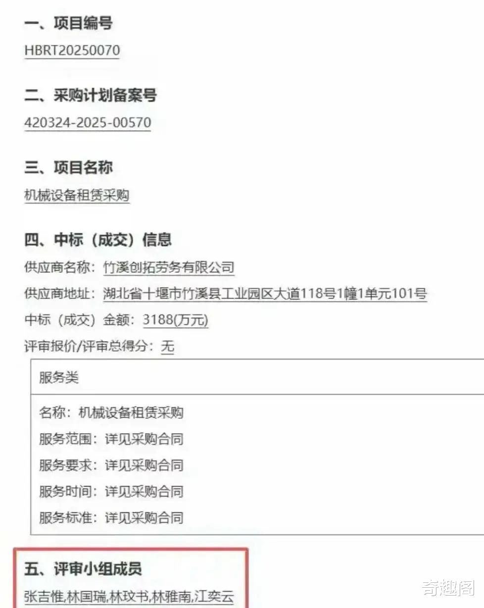 前段时间,张吉惟、林国瑞、林玟书、林雅南、江奕云等五个人的名字频繁出现,先是在湖北竹溪县住建局采购项目评审专家的名单中。后来有网友又发现在,在“华夏杯”的全国书法大赛,成人组特等奖和一等奖的获奖者,也正是这五个名字,而且顺序都与网络文档完全一致。