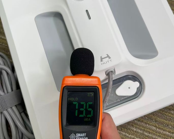 赫特W10擦窗机器人的实测噪音为73.5dB,超过了70dB的范围以内,整体的噪音偏大了一些。在开启后运作处理顽渍时,风机转速提升,噪音会变大不少,此时在同一房间会感到干扰。风道设计虽有优化,但履带摩擦声较明显。