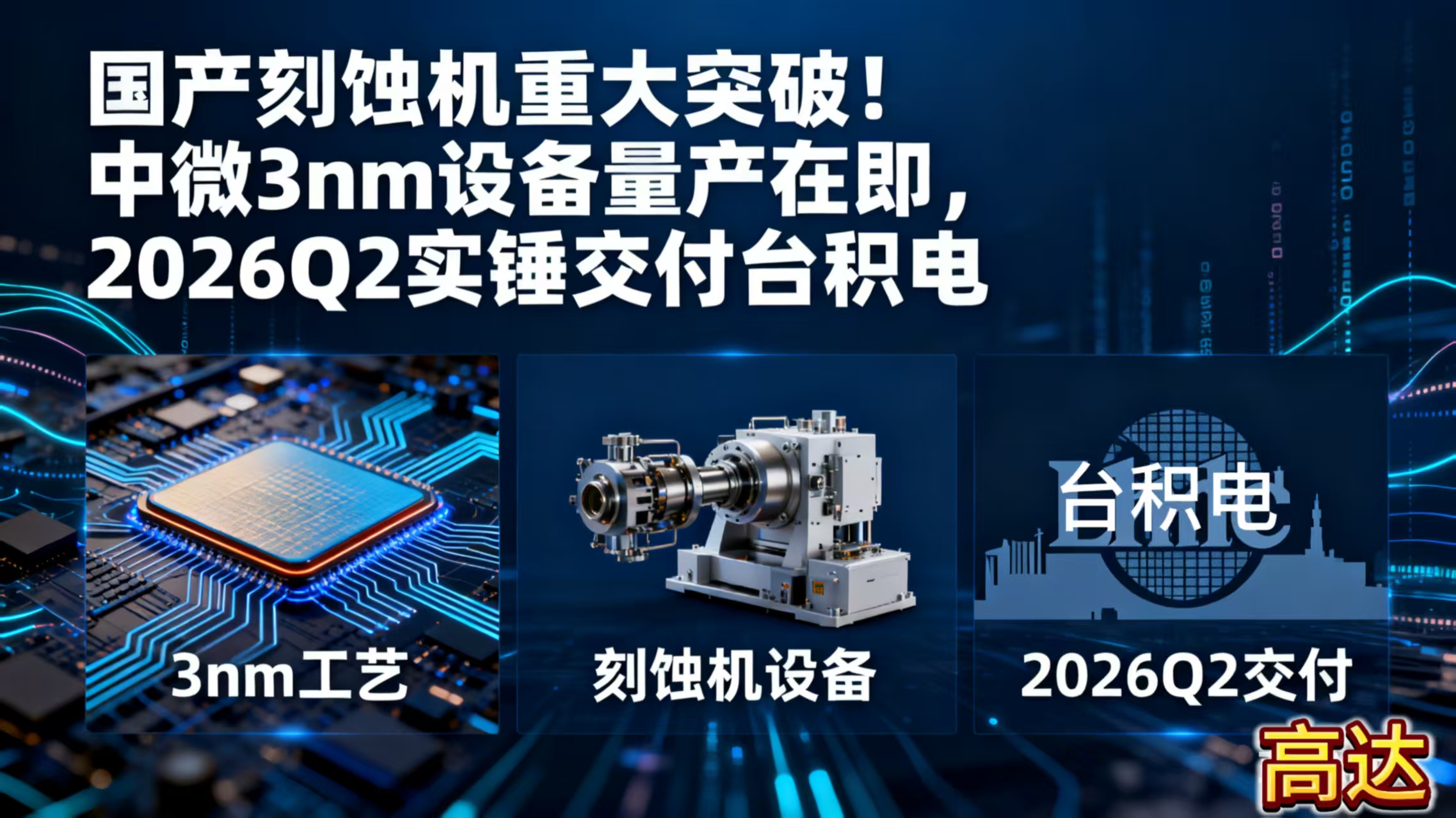 国产刻蚀机重大突破!中微3nm设备量产在即,2026Q2实锤交付台积电