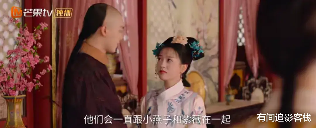 另一边,漱芳斋里也是分别的气息。尔康和五阿哥即将远赴缅甸征战,小燕子和紫薇依依不舍。豪气的小燕子甚至也想陪永琪去前线打仗。