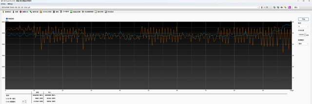 致态TiPlus7100: 图表显示其写入速率波动明显,平均读取速率保持稳定。测试数据显示其顺序读取速度约为 5344.6MB/s,顺序写入速度约为 5152.9MB/s。