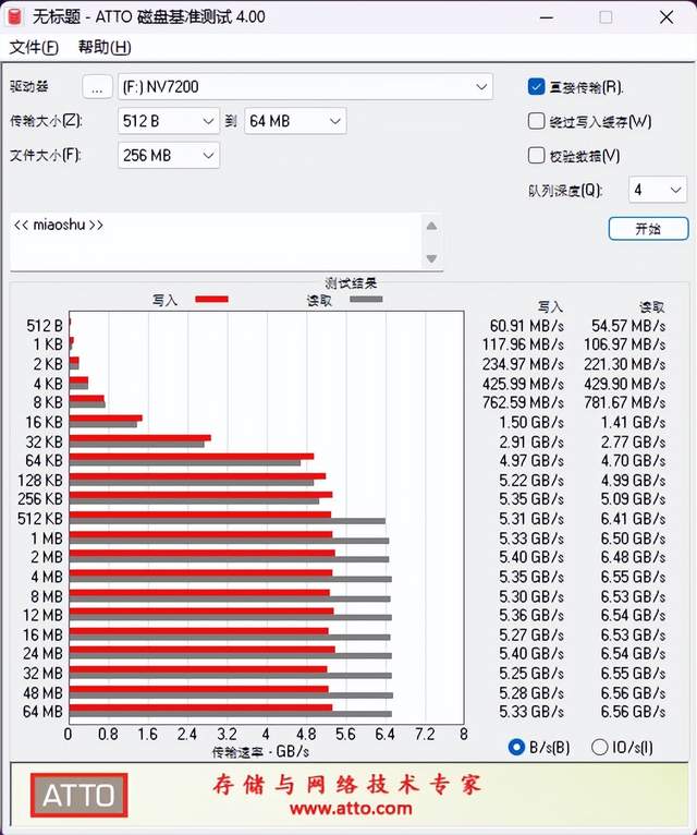 2.ATTO 磁盘基准测试:用于测量峰值传输速度和不同数据块大小的传输效率。