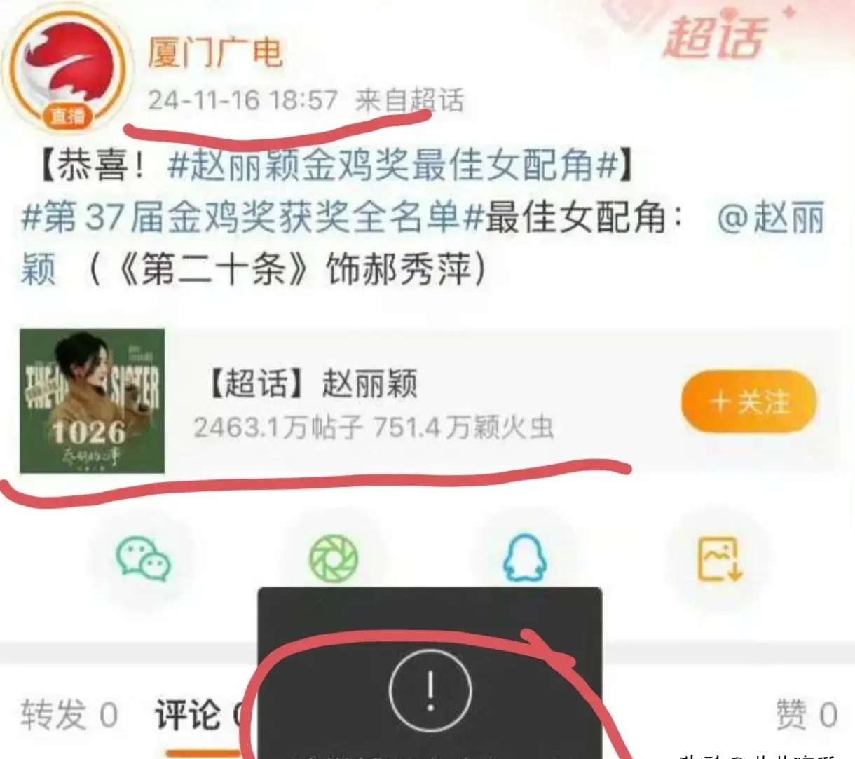 厦门广电在还没有公布获奖名单的时候,就直接为赵丽颖送上了获奖之后的祝福。