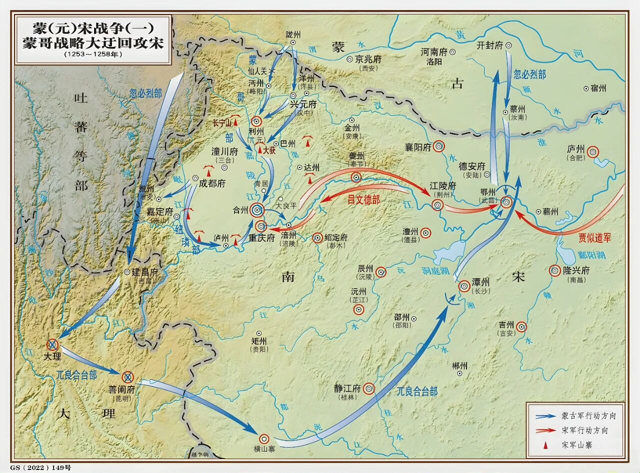 这套新“三关”方案,极具远见卓识,尤其是当时不被重视的第三道防线,既能防御蒙古军从川东东下,又可以抵御蒙古军从云南、广西方向迂回穿插。后来蒙哥攻宋之战,三路蒙古军中的一支就是迂回到云南、广西,从西南对南宋形成战略包围。