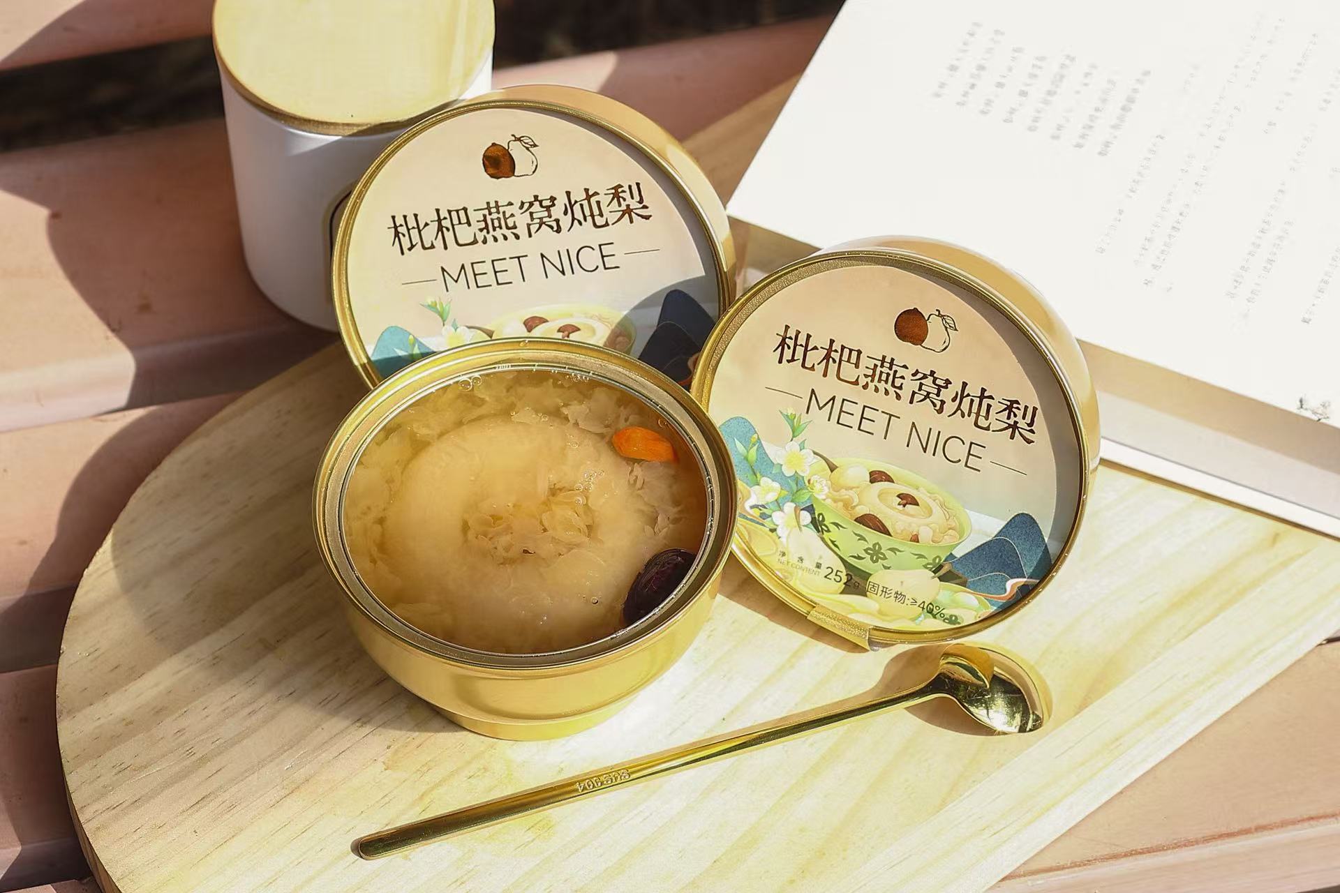 在产品研发方面,遇见仙炖专注于满足不同人群的健康需求,推出多样化的滋补方案,例如低糖低脂的花胶、即食便捷的海参等,兼顾营养与便捷性。品牌不断创新,推出多款符合现代消费者需求的滋补产品,如“枇杷燕窝炖梨”“人参花胶乌鸡汤”等。