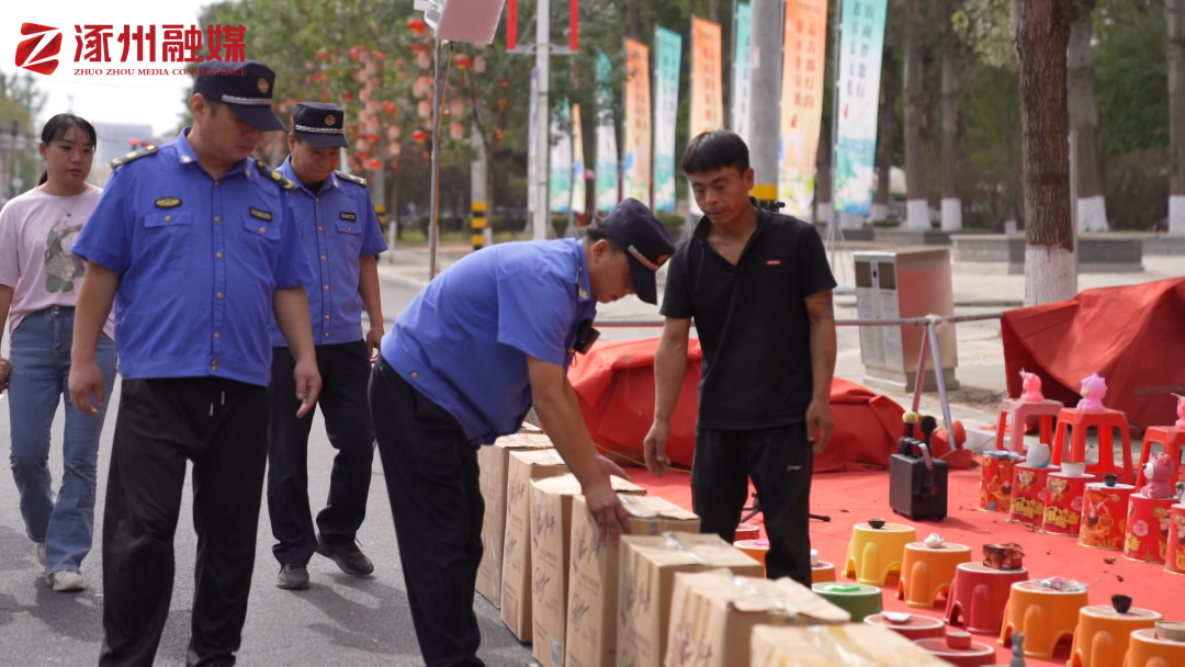 在园区外,市执法局工作人员已全员到岗,围绕通会灯市周边区域开展巡查,工作人员通过"定点管控 + 机动巡查"模式守护灯市环境。