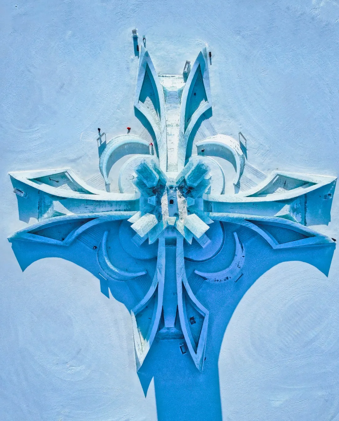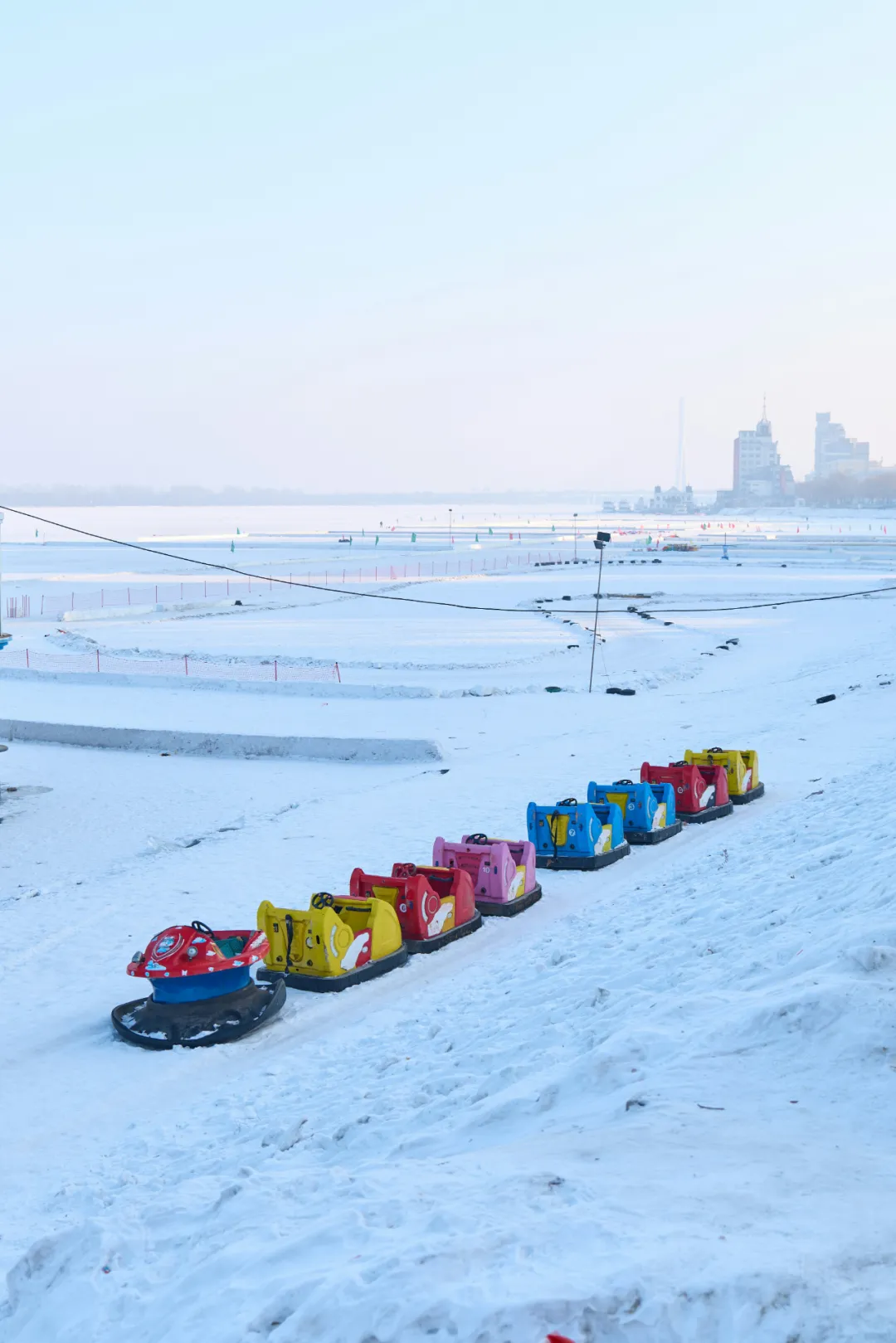 初次站在冬日松花江的岸边,每一位游客会对「江河」产生全新的认知——它不再流淌,而是凝固成了一片辽阔的、坚实的纯白原野。
