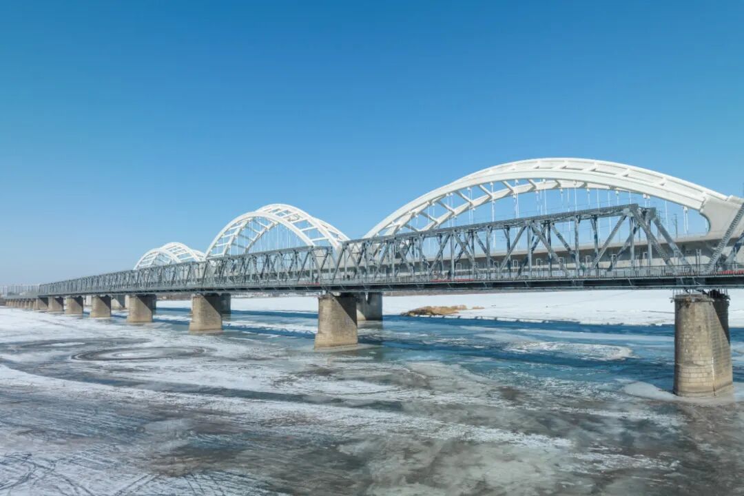 沿着江边走,可以看到著名的松花江铁路桥。这座建于1901年的铁路桥,是松花江上第一座跨江桥梁。