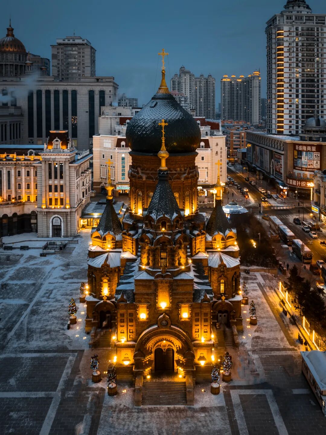 从中央大街漫步不远,就能看到圣索菲亚教堂。这座始建于1907年的拜占庭式建筑,是哈尔滨标志性的存在。