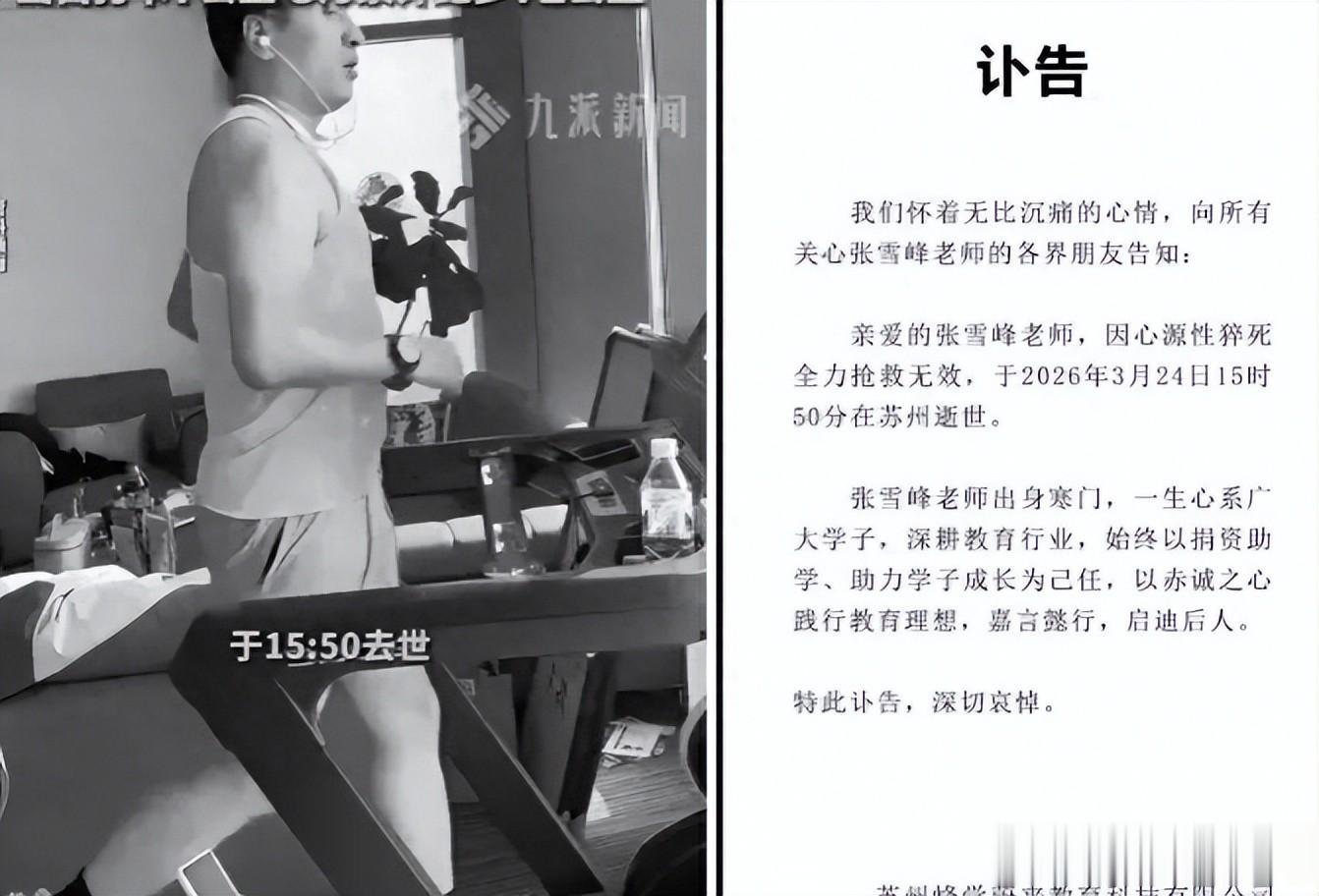 2026年3月24日早上,张雪峰还在直播间和家长互动,中午12:26跑步后突发不适,紧急送医后再也没能醒来。
