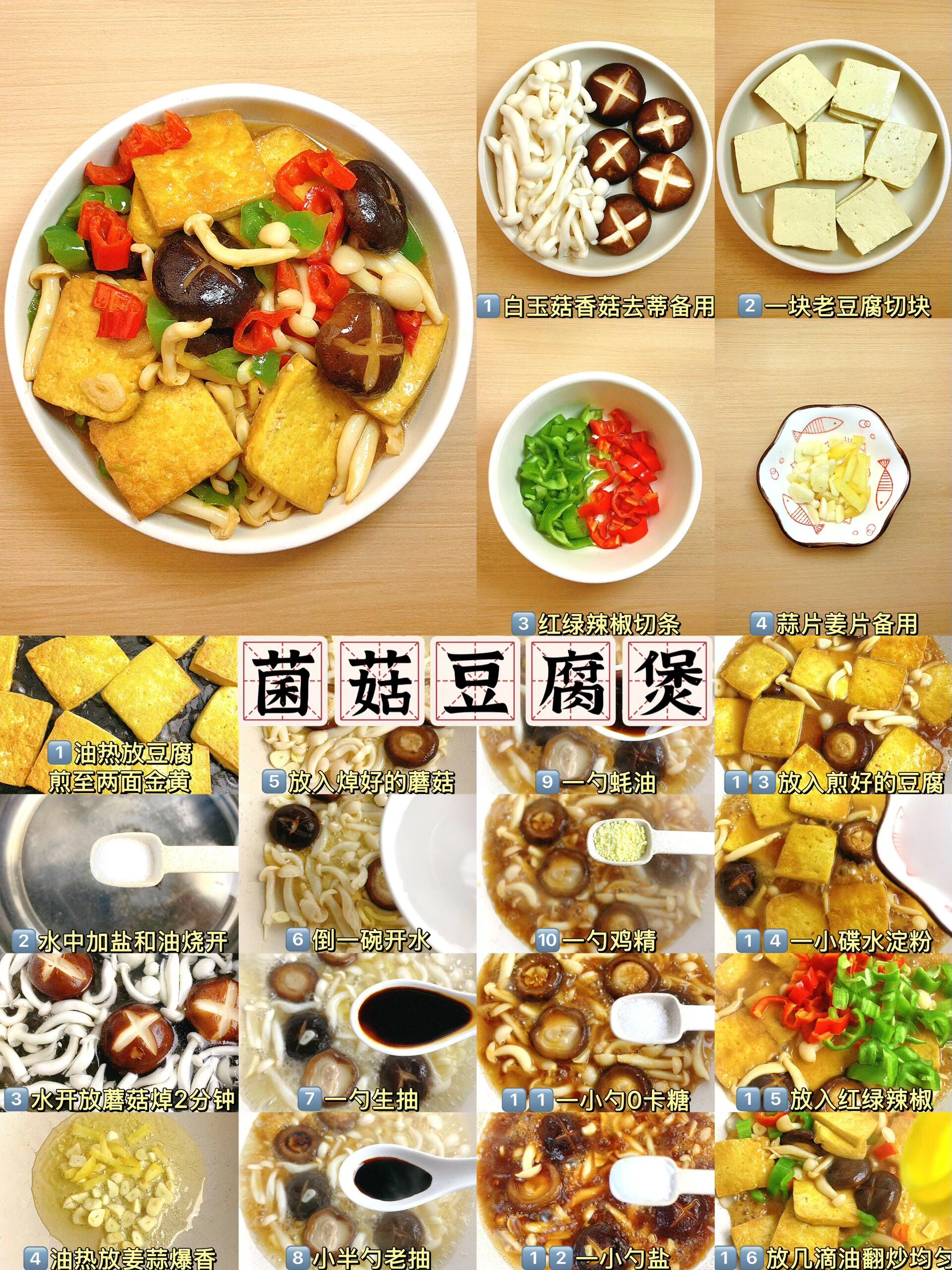 最后滴入几滴油,翻炒均匀即可关火,菌菇豆腐煲完成。