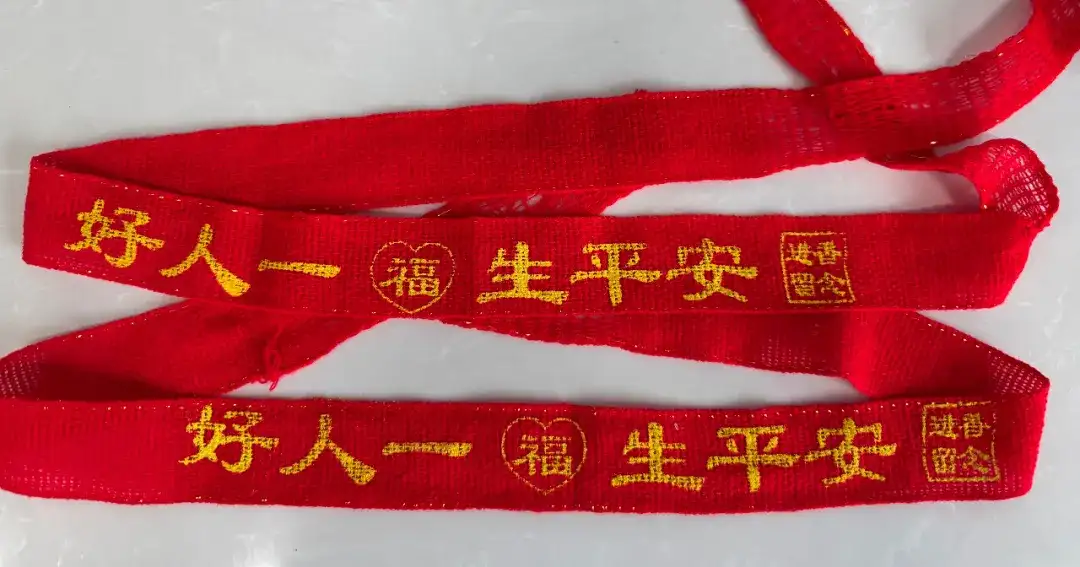 老头看我无聊,安排我回到车里,去拿一些现金摆放在案台之上。我则是把身上所有的港币硬币留了下来,不是没有人民币,想留港币在这里,以后给他们做个念想。老人家则从府君身上取下两条祈福红丝带送给我们,我恭敬的帮师父一起收下,物证如下!
