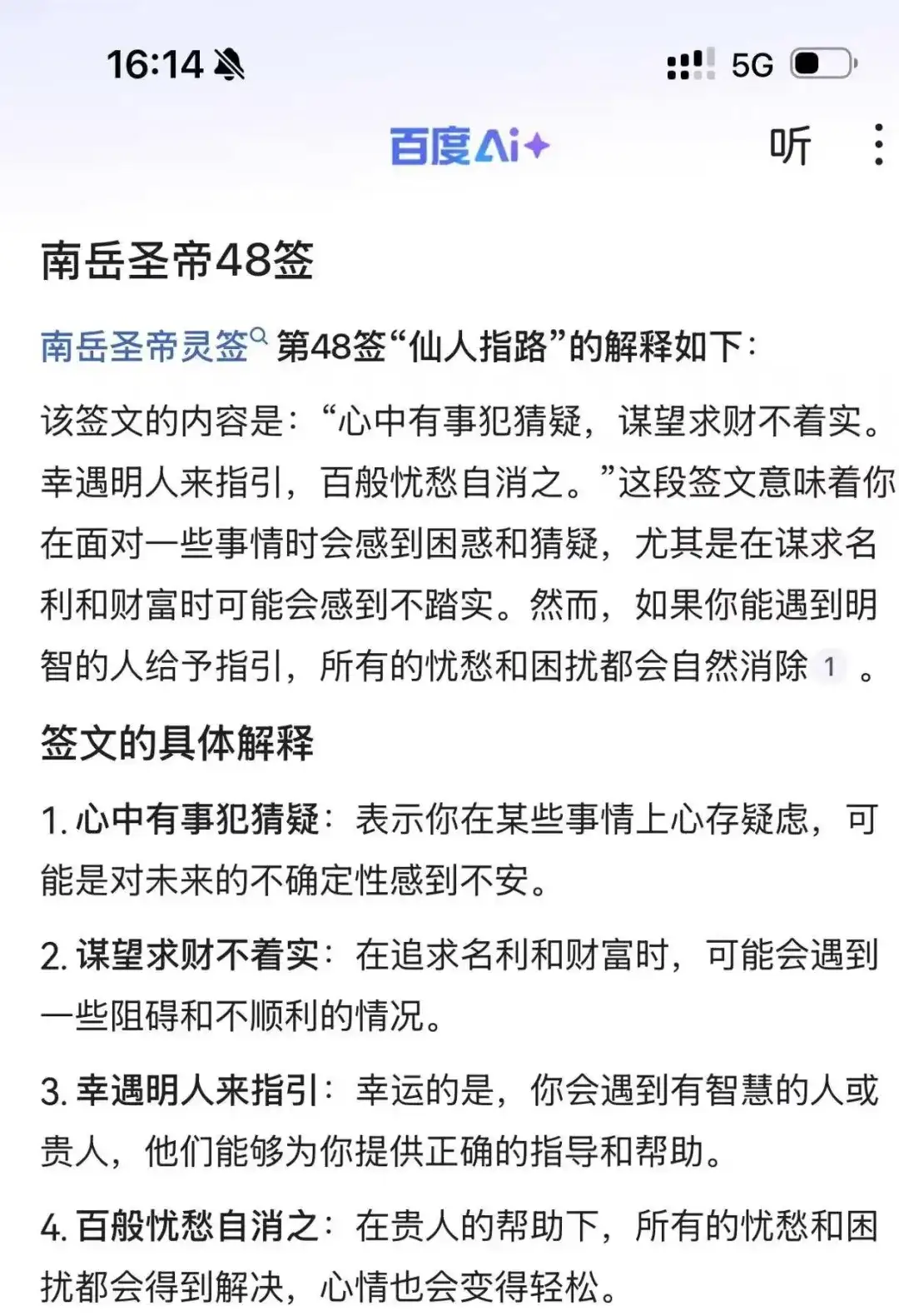 我就赶忙去搜,南岳大帝灵签第一签,是什么?
