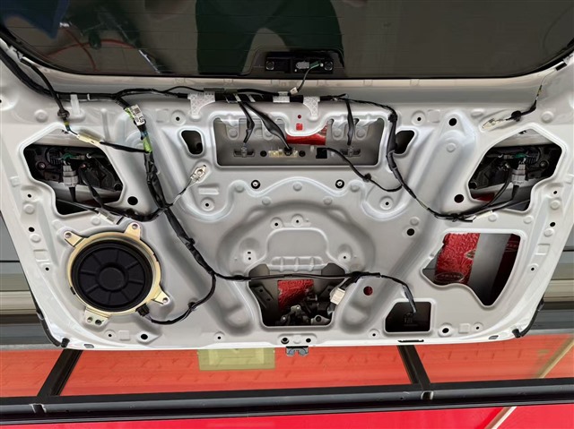 引擎盖 区域我们使用 大能红派 与专用 银卫士 做双层隔音。红派负责减少引擎振动带来的盖板抖动,银卫士则能有效反射发动机舱的热量,保护引擎盖漆面,同时降低发动机工作噪音向车厢内的传递。尾门 结构与车门类似,我们使用 红派 进行止振处理,确保车辆后部的静谧性与整体性。