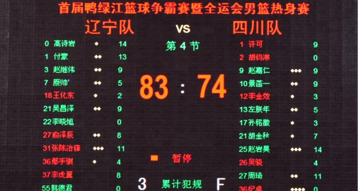 这场比赛双方的练兵意义大于比赛的结果,前三节双方基本分差并不大,辽宁只在第一节比赛结束后17-18落后1分,之后的第二节和第三节辽宁都是略有领先的优势,而且前三节双方基本暂停叫的都不多,直到第四节开始双方稍微能够认真一些,主教练也开始多次叫暂停了。