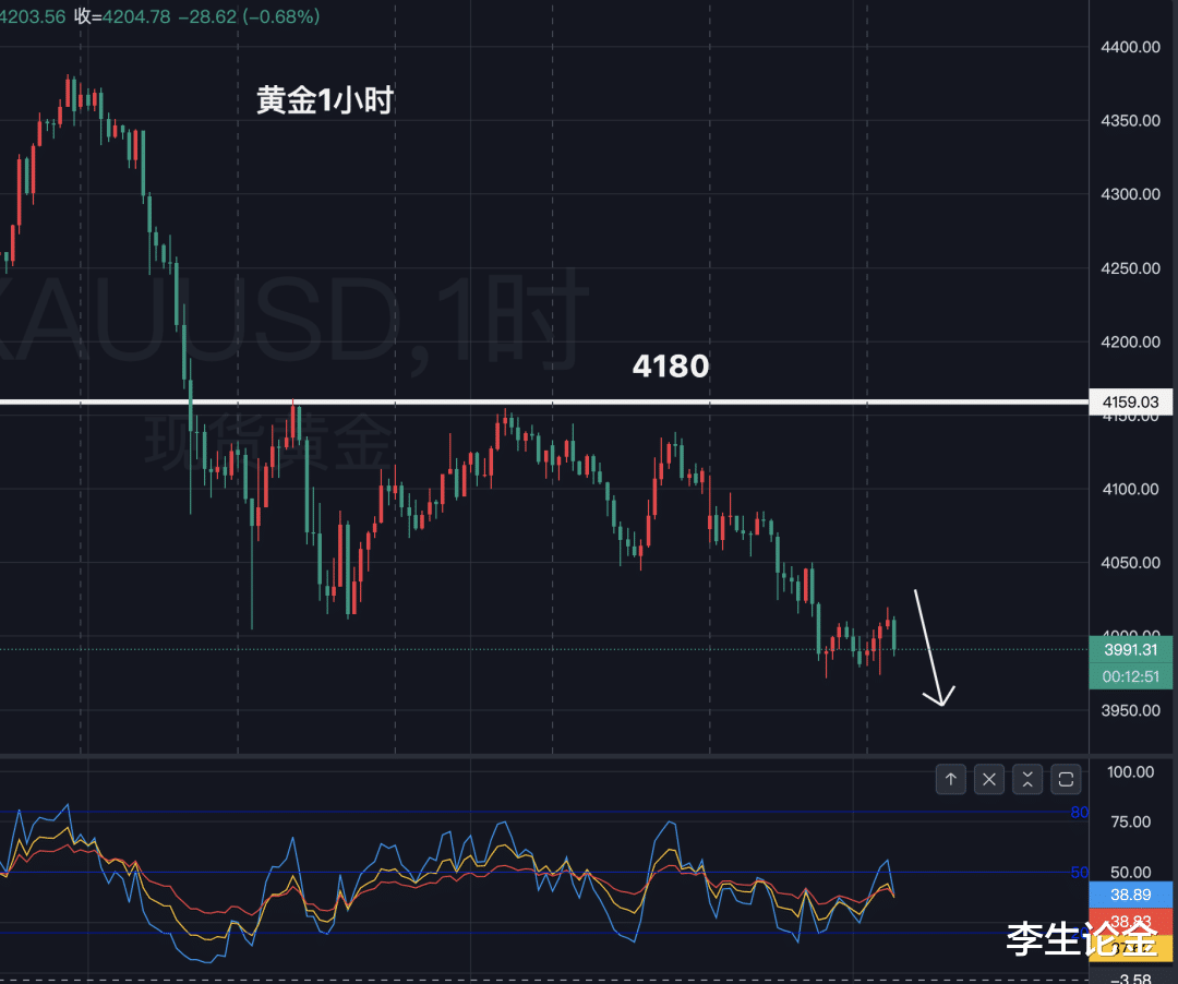 10月21日的暴跌,不仅是技术性超买后的获利回吐,更是市场情绪从狂热转向理性的标志性事件。而昨日金价再度跌破4000美元,将4180美元这一“多空分水岭”彻底坐实,标志着市场从单边上涨转为震荡下行。