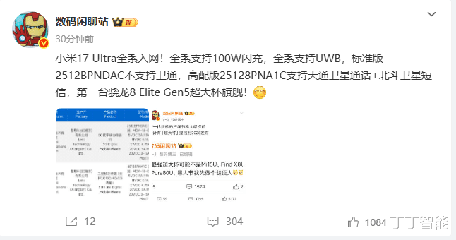 根据入网信息,小米 17 Ultra 将推出标准版与高配版两大版本,核心差异集中在卫星通信功能: