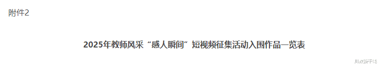 近日,由教育部主办的2025年教师风采“感人瞬间”短视频征集活动优胜作品和入围作品名单公布。四川工商学院报送的作品《平凡岁月里的不平凡》成功入围,是四川省唯一入围的民办高校。活动共收到作品2300余部,经过技术筛选和专家审议,最终遴选出40部优胜作品、100部入围作品。