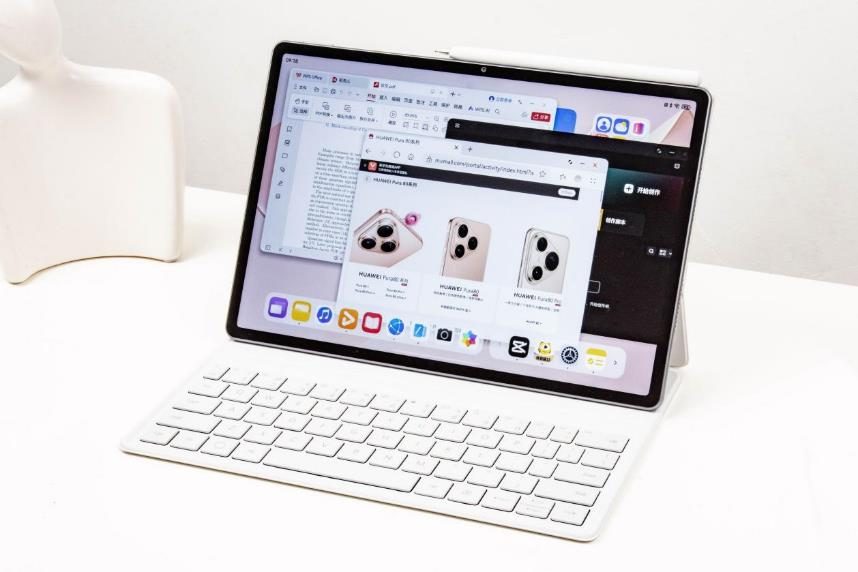 华为MatePad Air 2025款全面搭载HarmonyOS 5,整机综合性能较上代提升27%以上。自由多窗功能支持4个应用窗口同时在前台显示,学生党可以一边看网课、一边记笔记、一边查文献,职场人能同时处理文档、回复微信消息、做PPT大纲,多任务切换更加丝滑顺畅,视觉显示效果拉满。