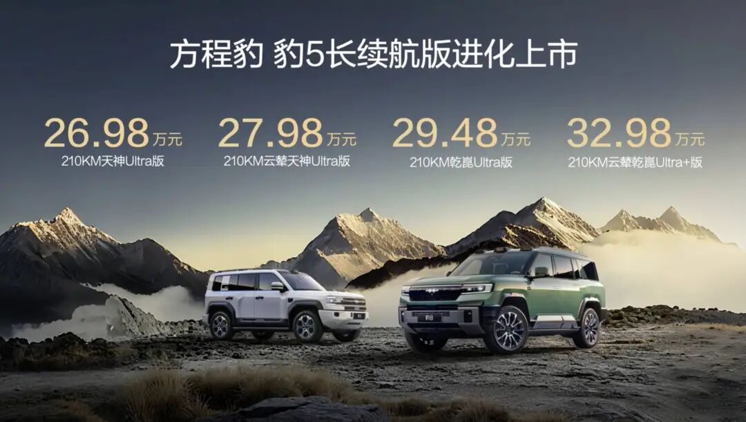 成立两年多的方程豹,用数据证明了其在新能源硬派越野赛道的实力,品牌累计销量即将突破20万台,豹5也将迎来第10万台销量里程碑。在初步完成市场验证后,品牌选择以解决用户核心痛点为方向推出迭代车型,豹5长续航版与豹8大五座版同步上市。