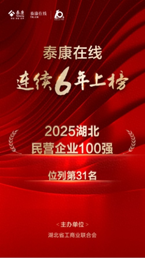 2025湖北民营企业100强名单公布 泰康在线连续第六年强势登榜