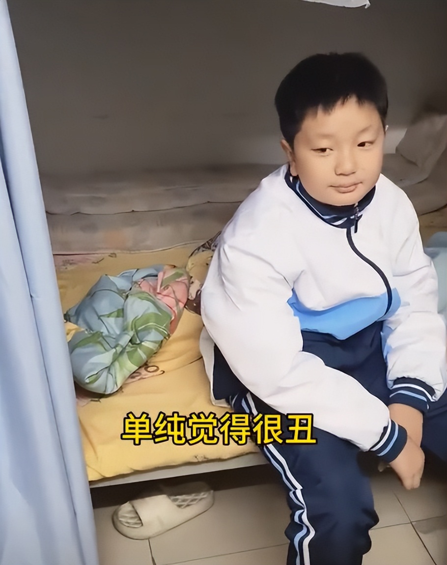 他的孩子看样子已经上初中或者小学,穿着一身校服,笑呵呵的坐在床上,但是整个视频的基调确实充满了激烈的争吵。