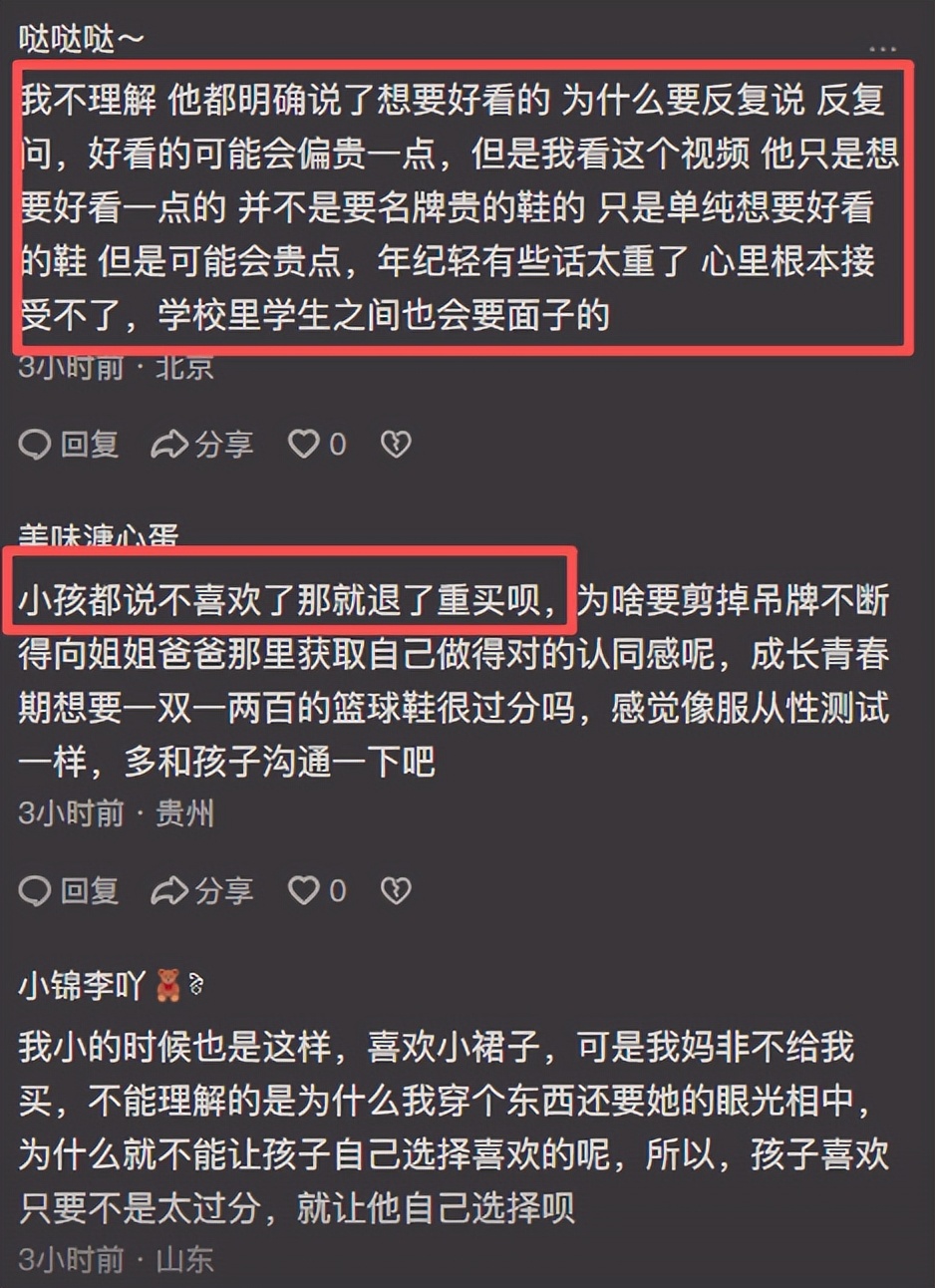 就像一位妈妈在网上发了这样一段长视频,长达七分多钟,而且语气充满了心酸,大概意思是他的孩子长大了,再也不是小时候那个父母给买什么鞋子他就穿什么鞋子的孩子了。