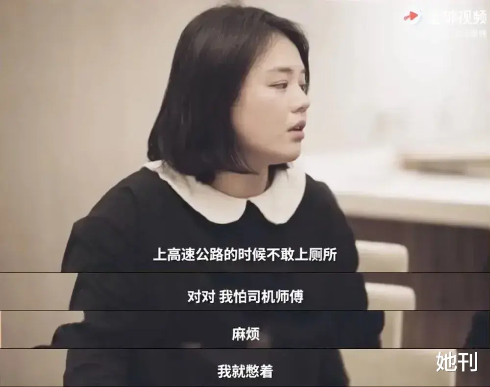 成年后,在高速公路上想上厕所,她会因为怕司机麻烦而选择憋着;在片场,她也不敢表达自己的想法,生怕别人生气。