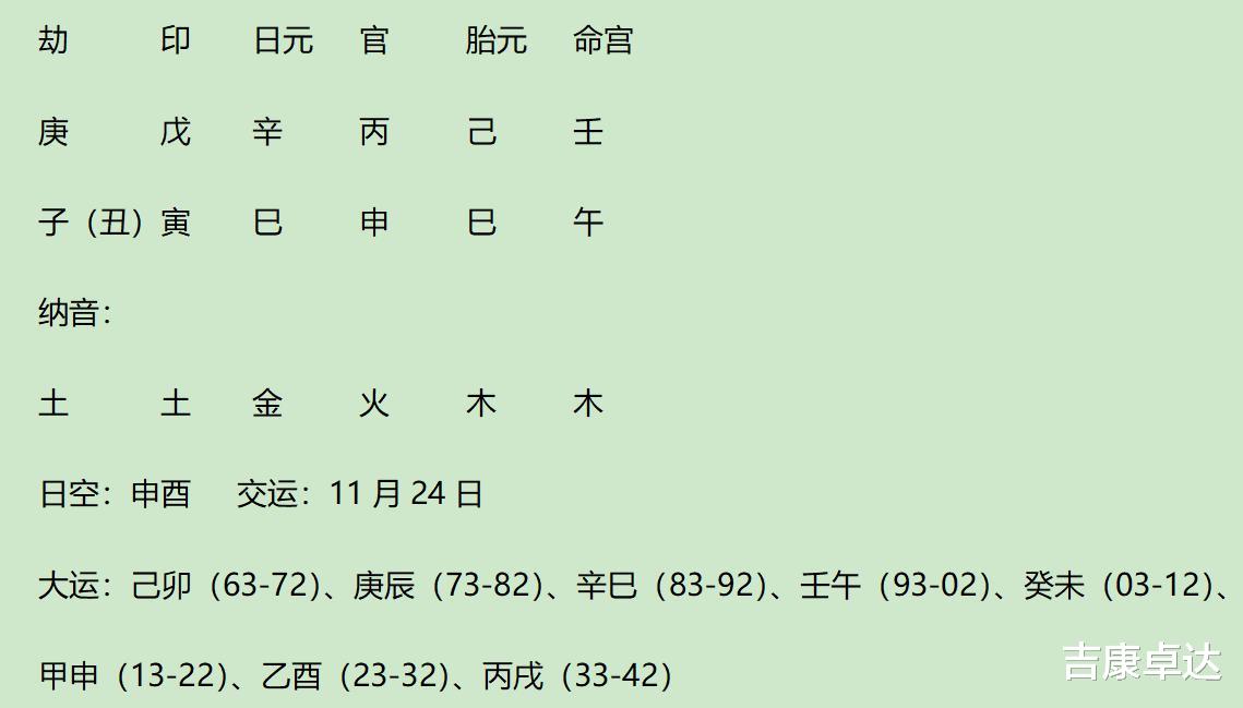 此年,小限丑与胎元巳拱酉,巳合时支申而子女宫动。