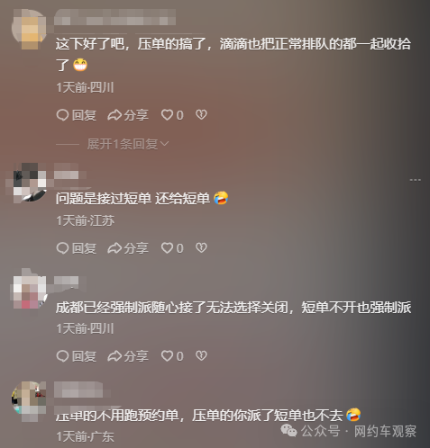 但是也有车友反馈,规则更新之后,只要跳预约单进来就会暂停计时,需要司机手动操作,这样虽然可以让那些压单的人睡不了觉,但是对正常排队的司机也一起收拾了,一接到预约单就跳转了。希望滴滴能够继续改进规则,既能打击作弊,也不影响司机正常接单。