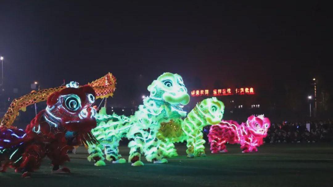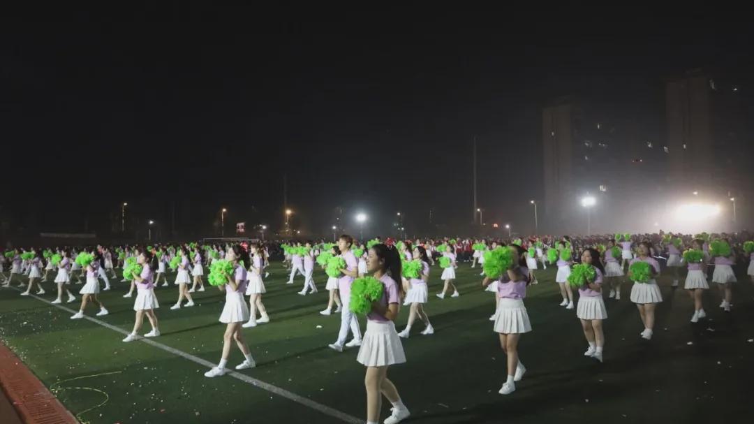 节目展演环节更将氛围推向高潮。本校女子匕首操队员动作刚劲有力,一招一式尽显巾帼风范;信阳农林学院龙狮队带来精彩表演,龙腾狮跃间融合传统韵味与运动活力;信阳职业技术学院青春啦啦操队员舞姿灵动,动感节拍与欢快舞步点燃全场热情。灯光映照下,各支队伍的表演赢得师生阵阵欢呼。