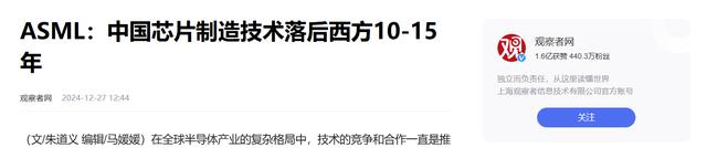 观察者网——ASML:中国芯片制造技术落后西方10-15年