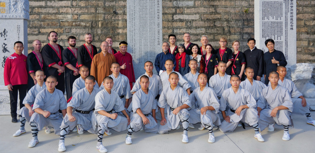 十余国咏春组织负责人及各派武术名家不远万里,翻山涉水,探源溯流,寻根问祖,齐聚闽中天地会红花亭五枚师太纪念碑前:双合掌、三鞠躬。