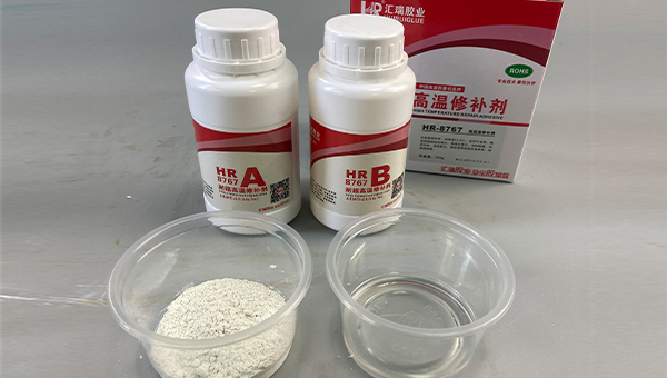 HR-8767由灰白色A剂(无机陶瓷粉体)与液体B剂(改性固化剂)组成,通过精确配比(2.0~3.0g:1ml)混合后,固化形成类陶瓷结构。该结构在高温下不碳化、不软化,长期耐温1000℃,瞬间耐温达1200℃,彻底解决传统胶粘剂高温失效的痛点。