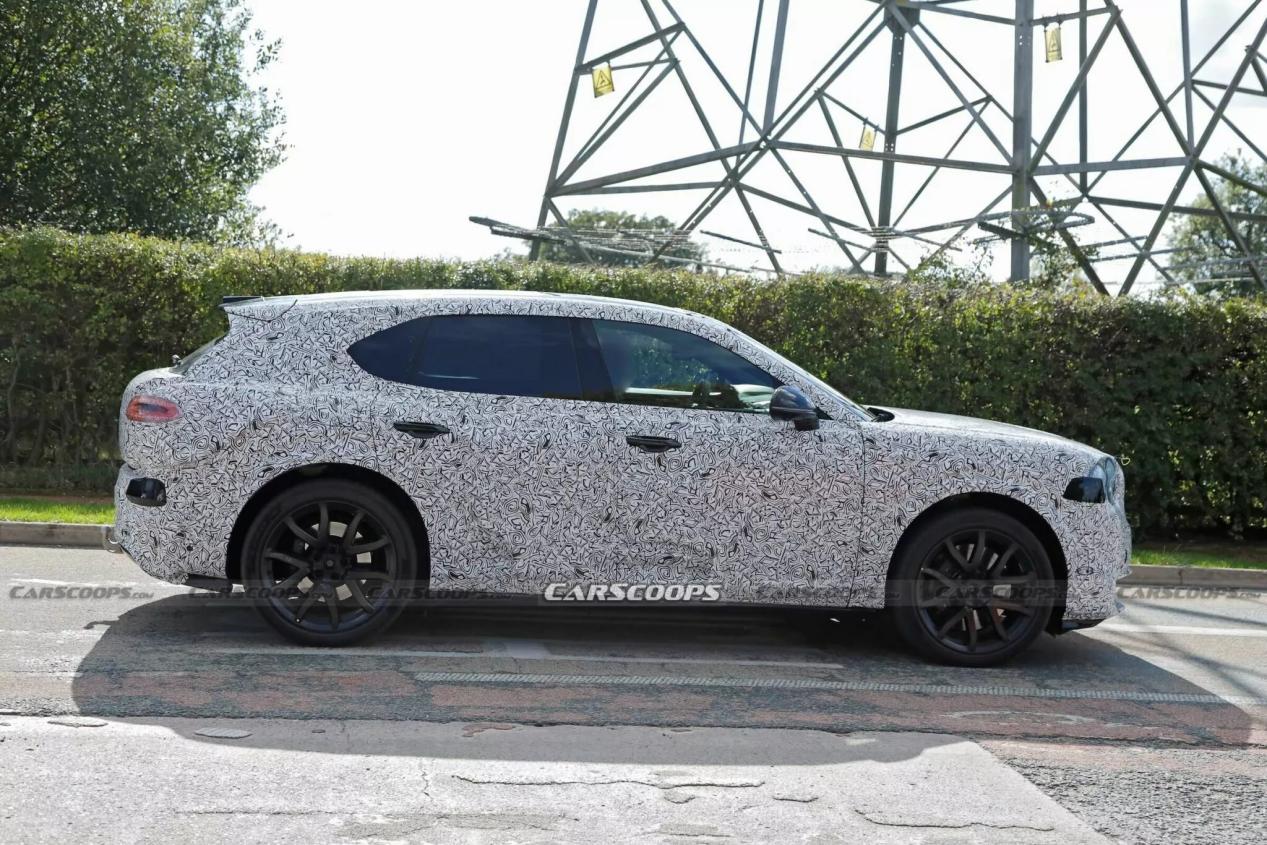概念车上垂直布局的头灯、巨大的方形格栅以及独特的“发夹”形尾灯元素,极有可能在这款都市SUV上得以量产化演绎。与添越相比,它的车顶线条在B柱之后下滑更为明显,勾勒出优雅的溜背造型,后门长度也相应缩短,整体姿态更富运动感与时尚感。这清晰地表明,宾利旨在打造一款兼具经典奢华气质与未来电动美学的独特产品。