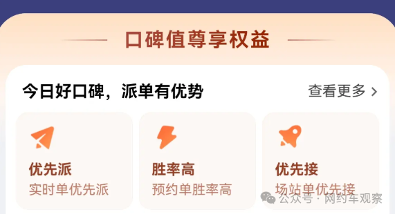 不过如果你是全职跑网约车,而且滴滴是主平台,出行分该跑还是得跑,毕竟现在是淡季,网约车行业也是僧多粥少,拿满分数接单比较有优势。口碑值高的司机不仅有实时单优先派、场站优先接,在抢预约单的时候胜率也更高。