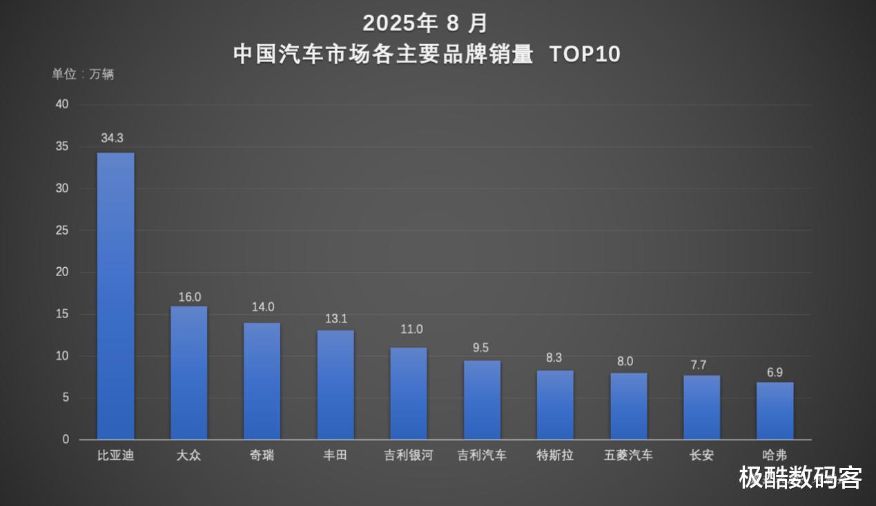 旗下王朝与海洋网络单月贡献34.3万辆,前8月累计实现263万辆,持续保持断崖式领先。