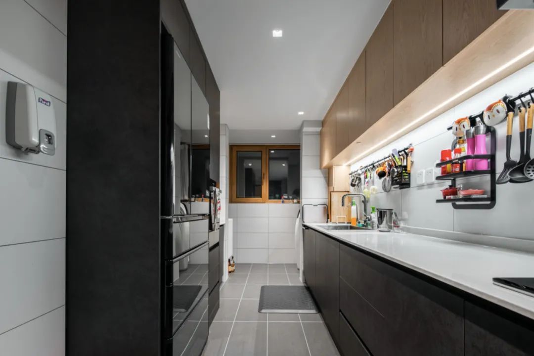 4、厨房台面做高低台,灶台台面低,炒菜不用架胳膊;水槽台面高,洗菜不用累断腰。