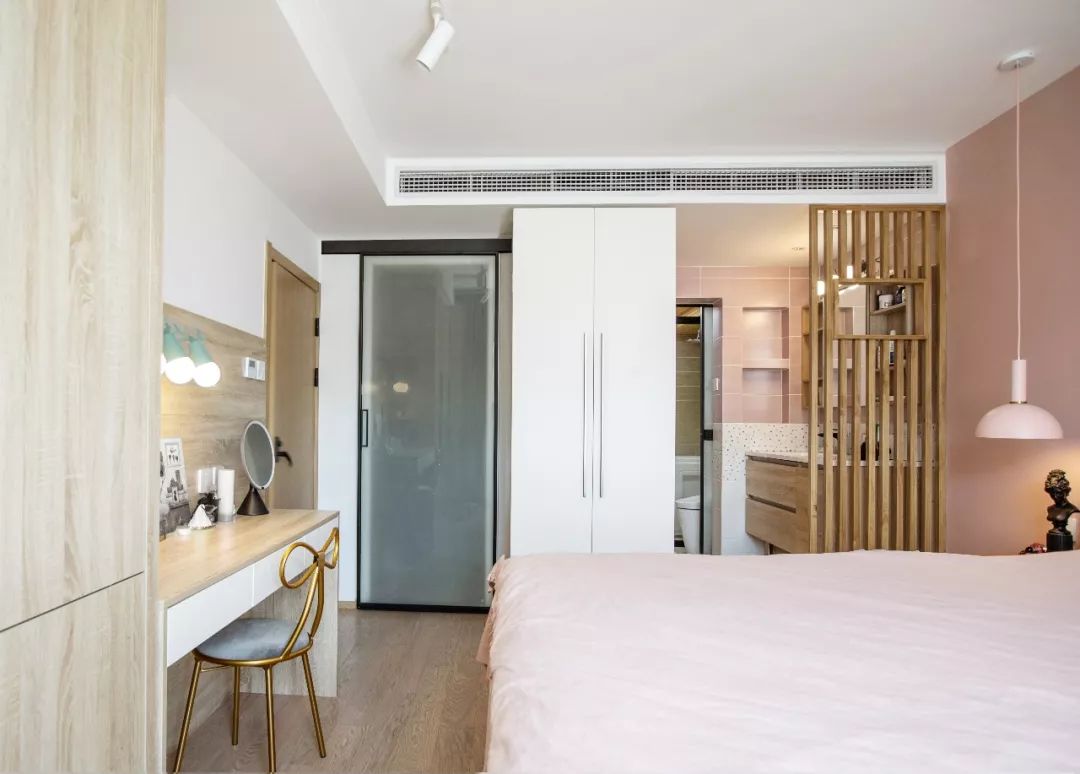 2、衣柜最好做到顶,不用担心落灰,而且空间利用更充分。内部多设置悬挂区,方便省事,最适合懒人。