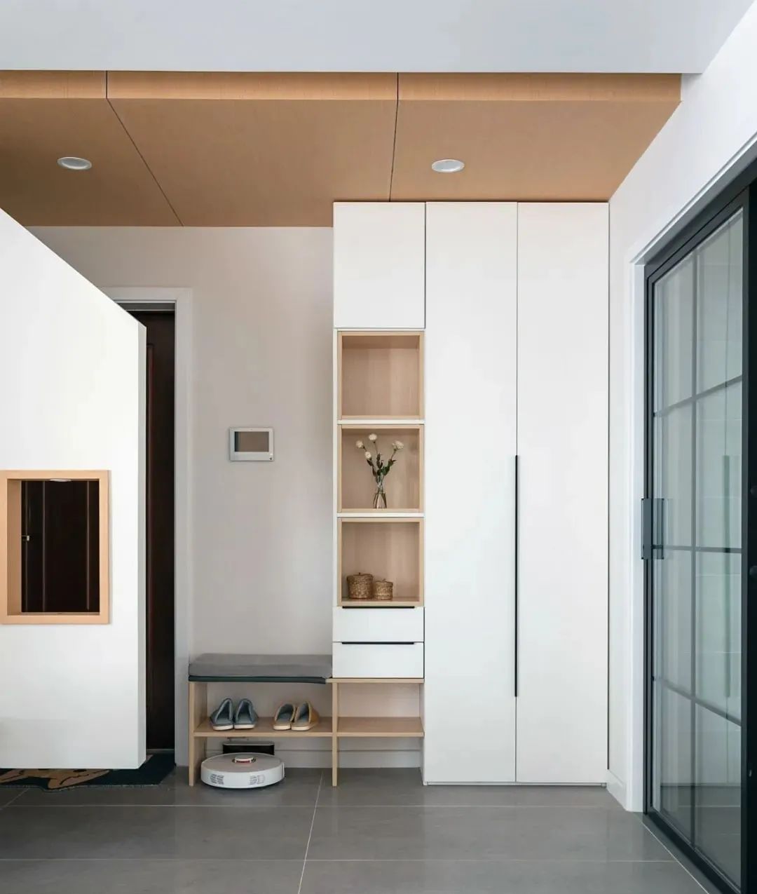 1、玄关柜底下留出常穿的鞋位,脱下来的鞋子有地方放,进门再也不会很乱糟糟了。