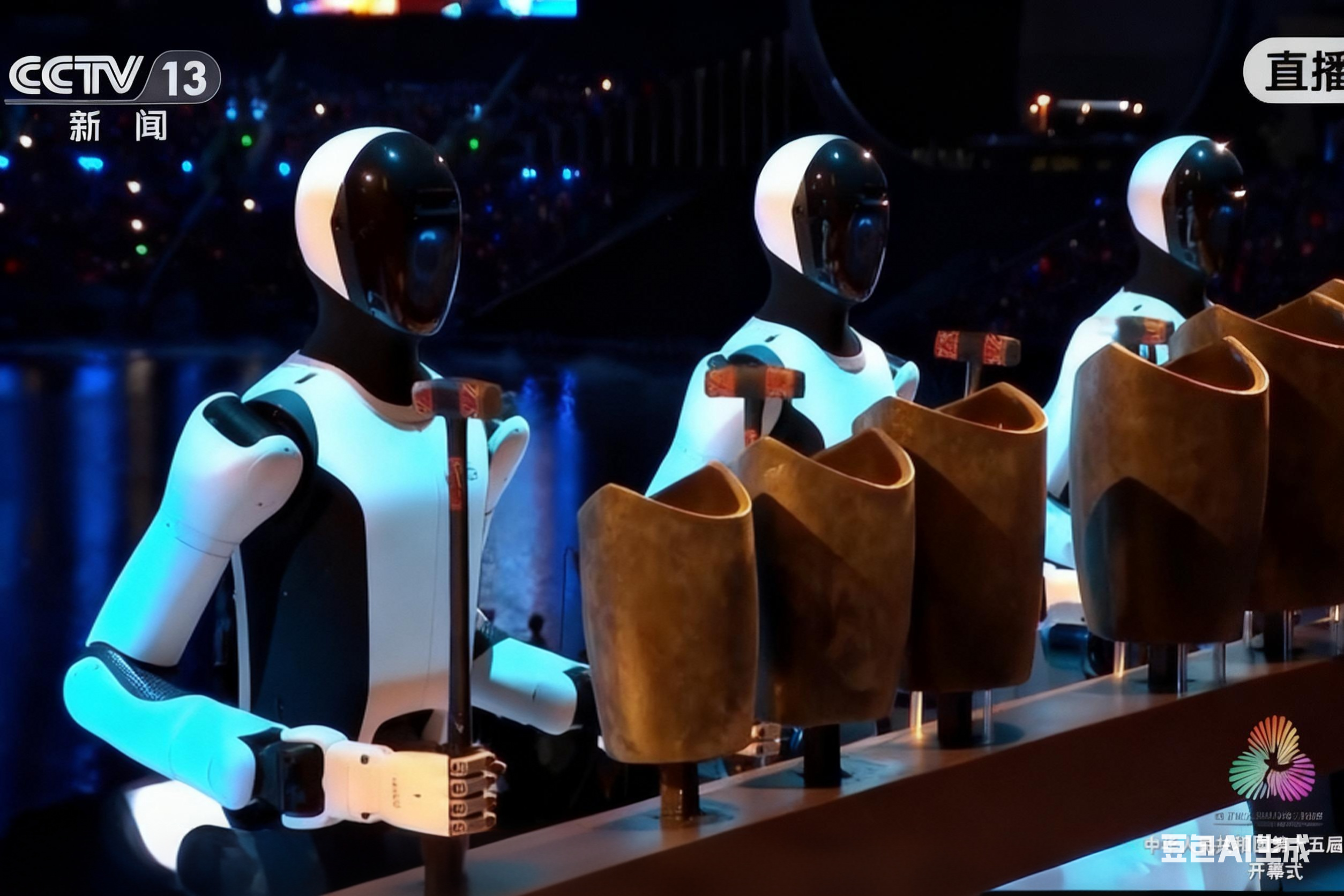 11月9日,广州的夜晚微凉。第十五届全国运动会开幕式上,一名机器人缓缓举起槌子。
