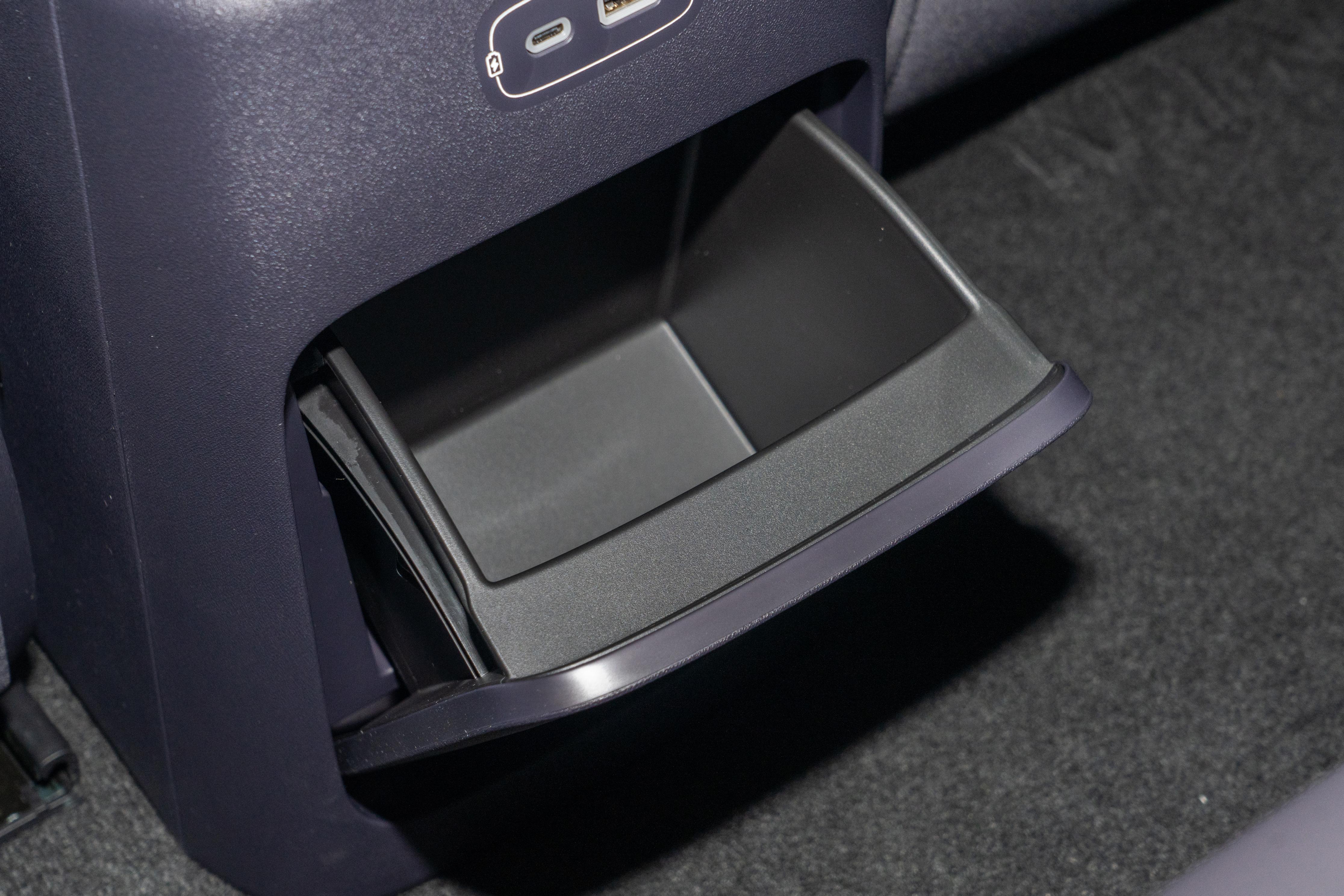 进入零跑B01的座舱,首先被“悦动几何”设计语言所吸引。幻月紫与纤云灰双主题配色搭配88%软包覆盖率,云绒质感皮革通过母婴级认证,触感细腻且安全无忧。中控台采用分层设计,14.6英寸2.5K悬浮屏(分辨率2560×1400)与8.8英寸全液晶仪表组成核心交互区,搭载Leapmotor OS 4.0系统,支持HUAWEI HiCar与Carlink手机互联,3D灵动桌面与一镜到底动效设计交互更智能。座椅采用竹炭纤维面料,不仅环保抗菌,还能有效吸附车内异味。主驾驶座椅支持多项电动调节、通风和加热功能,副驾驶座椅也配备了加热,不过有用户指出副驾未提供通风功能在夏季略显不足。虽然定位为紧凑型轿车,但凭借2735mm的轴距的空间优化,实现了高达86%的“得房率”。以身高180cm的体验者为例,坐在前排调好坐姿后,后排膝部与前排座椅仍有两拳半的余量,头部空间也保持在一拳左右。后排纯平地台设计进一步提升了中间乘客的乘坐舒适性。后备箱标准容积为460L,底部采用双层布局,可额外提供70升的隐藏储物空间。后排支持40:60比例放倒,进一步扩展了装载能力。车内还设计了多达26处的储物空间,包括中央扶手箱内置8.5L储物空间,可放置笔记本电脑和文件夹等物品。不可开启的全景天幕配备电动遮阳帘,紫外线隔绝率达99.9%。配备了12扬声器音响系统,带有DSP数字功放,支持K歌功能,连接麦克风后可在车内唱歌。256色氛围灯支持音乐节奏联动,夜间行车时营造出沉浸感十足的座舱环境。