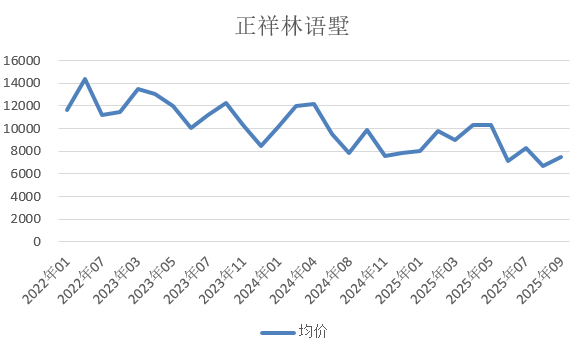 正祥林语墅:位于旗山的大盘,板块的下游代表,2023年9月开始下跌,此前均价1.2W左右,跌到2024年11月的8K,随后在8K上下波动,近2个月均价来到7K。