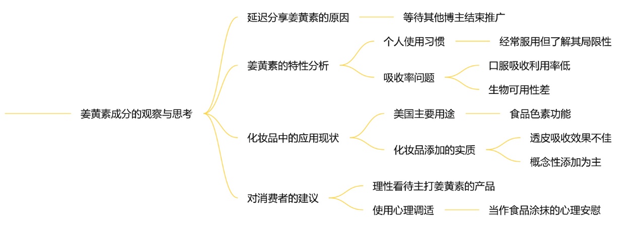 本文揭示了姜黄素在化妆品中的实际效果有限,主要作为食品色素使用,并指出其在护肤品中多为概念性添加。