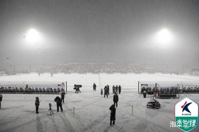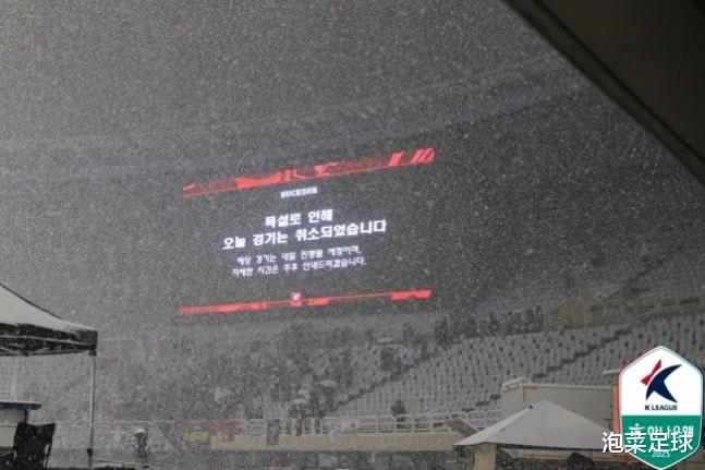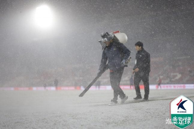 在富川和水原FC双方俱乐部同意后,当值主裁金钟赫和监督根据赛场情况进行了现场商议,考虑到VAR系统彻底无法使用(因积雪覆盖),最终在和联盟报告后,通知双方和现场球迷,决定取消当天的比赛。比赛时间将在明晚的七点进行,而工作人员,也在极力对现场积雪进行铲除。